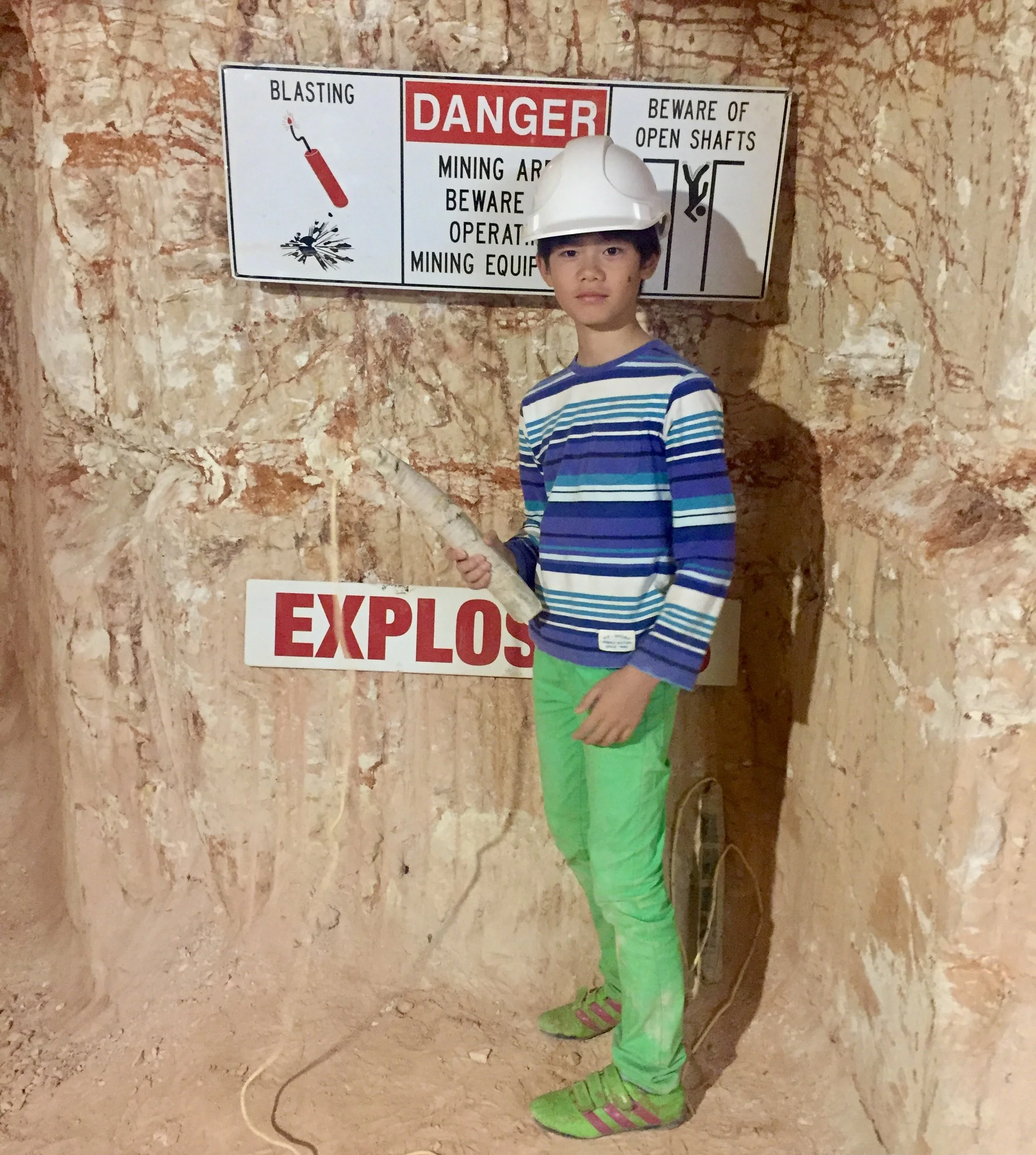 息子が幼い時クーバーピディで爆破の疑似体験をしました。
